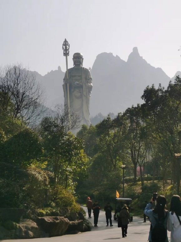 九华山大愿文化园景区是以地藏文化为核心的佛教文化主题公园,也是九华山核心地标。景区由99米地藏菩萨圣像及配套景点和服务设施组成,集自然山水与佛教文化于一身,融传统艺术与现代科技于一体。从远处看见大佛,到一步一步走近大佛。那种庄严的、朴素的秩序感,让人生出敬畏之心。