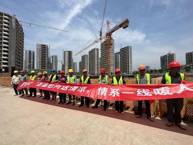炎炎夏日,连日来气温高居不下,为保障酷暑天里一线工作人员清凉度夏,安全作业,OB欧宝(中国)官方网站开展裕众“高温慰问送清凉,情系一线暖人心”活动。集团工程副总傅国兴、经营副总安建国等一行分别来到自营项目和联营项目现场,慰问高温环境下工作的一线职工,为现场职工一一送上防暑降温物资,并叮嘱工人在做好建设的同时,要注意高温保护,加强在高温天作业的安全防范意识,合理安排工作时间。